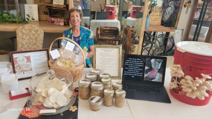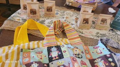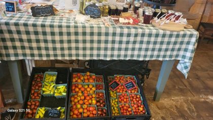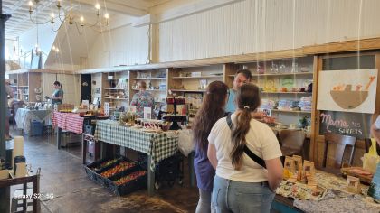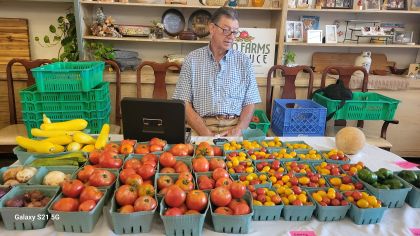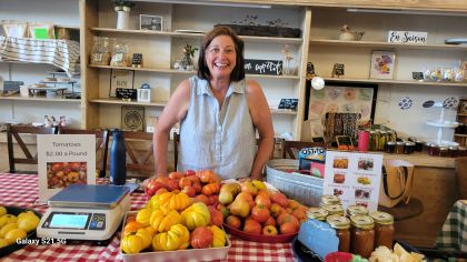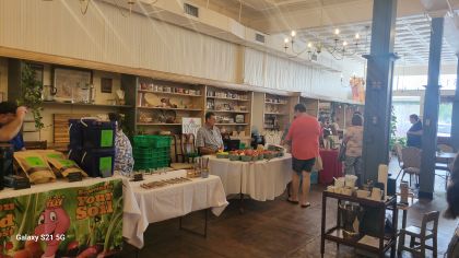 On Saturday morning, La Petite Affaire means farmers market within the cafe. The weather will not affect you – rain or shine, hot or cold. You can enjoy coffee and breakfast as well as shopping for the freshest produce. The farmers come from the Marksville area and include traditional as well as unique items – oyster mushrooms, heirloom tomatoes, jams and jellies, granola, dried herbs, BBQ sauces and rubs, as well as many other items. There are also worm castings for improving soil health.