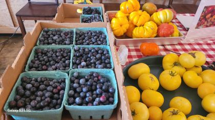 Our purchases included oyster mushrooms, rose petal jelly, blueberries, heirloom tomatoes, microgreens and granola as well as coffee and breakfast.